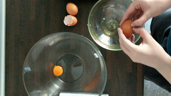 Preheat the oven to 175°c. Separate the 3 eggs. The whites go in one large bowl and the yolks in another large bowl.