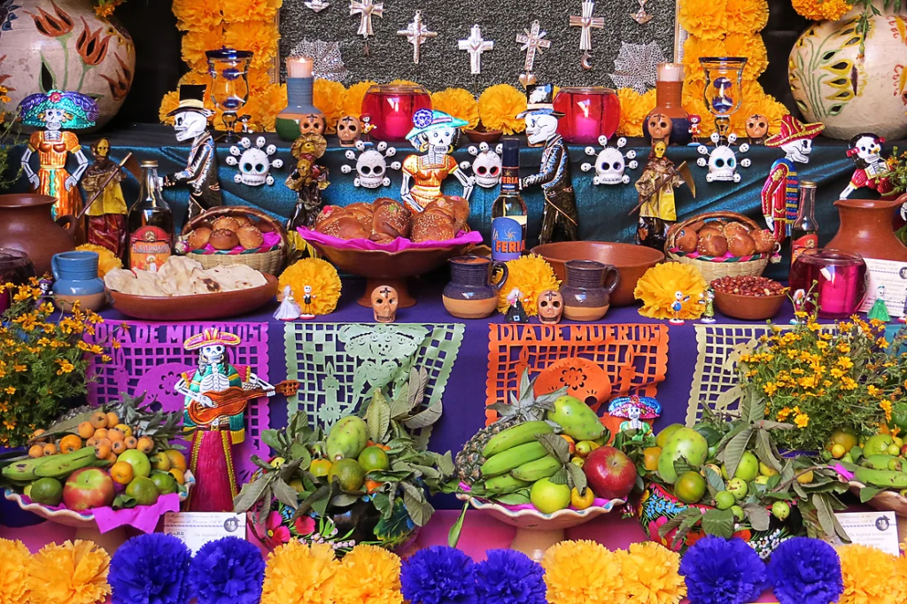 On Dia de los Muertos, Pan de Muerto are placed on on the altars of loved ones, mirroring the Aztec tradition of placing food as offerings on tombs of the deceased.