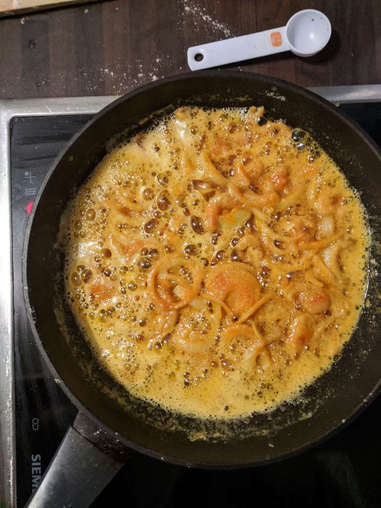 Melt your 55g KNOB (emphasis because this a large amount of butter) in a large frying pan over a medium-low heat.