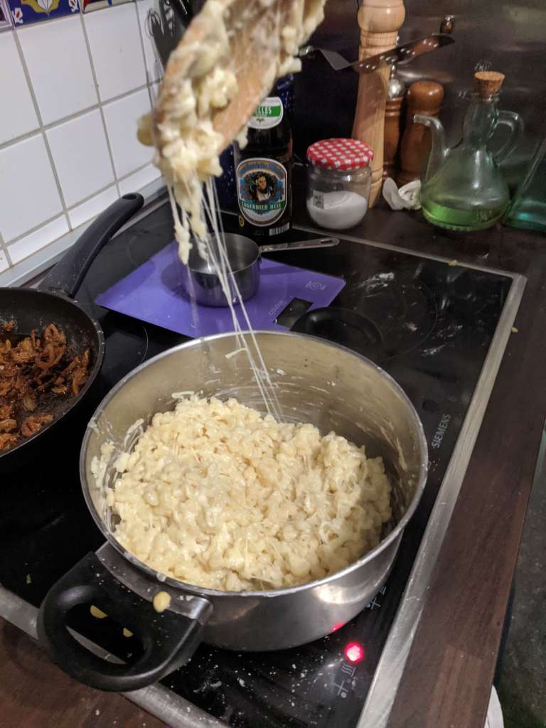 Lizzy says: “This was my first spätzle making and eating experience, and it set the bar pretty high for all future spätzle. It was a little bit of faff to actually get the spätzle through the colander, so I think in future I’d use a potato ricer. But when it came together it was very tasty, especially with a large helping of crispy onion and the essential herbs. All in all it was a delightful, formative experience. 9/10“