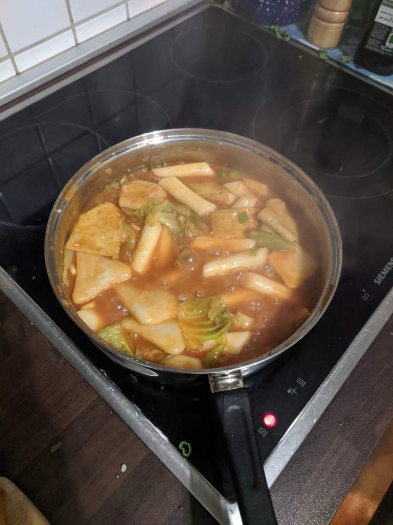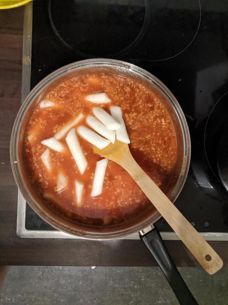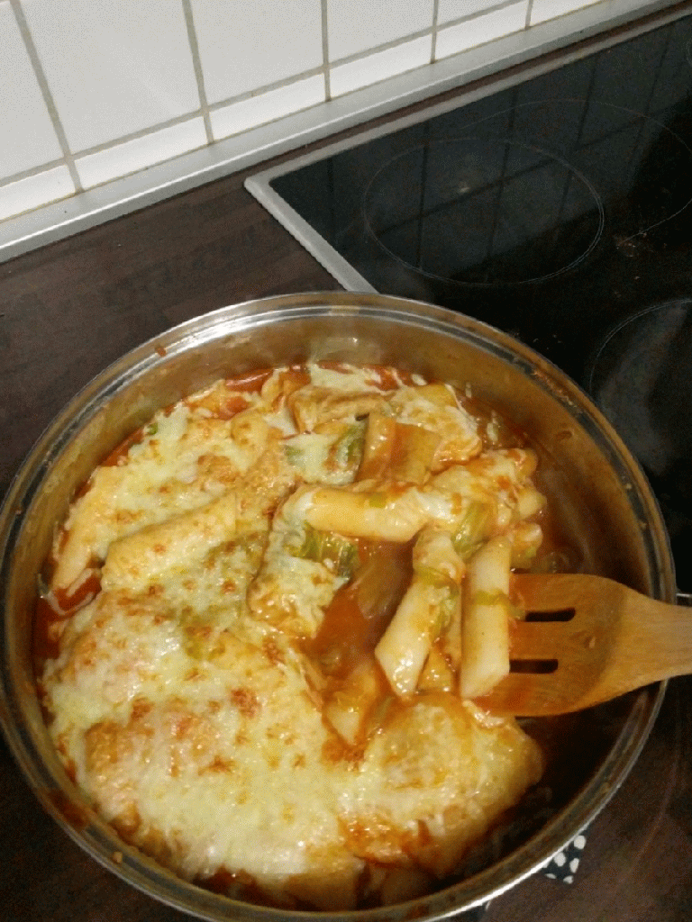 Tteokbokki is a Korean streetfood, best eaten with seaweed spring rolls. The spicy, cheesy taste, as well as the texture make it great comfort food. We were inspired to make this by Trixie Mattel and Kimchi’s Korean food tasting video. The recipe is from Korean Bapsanga Korean mom’s home cooking.