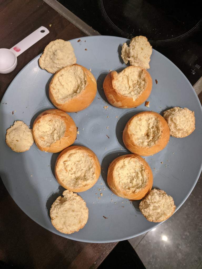 Once the oven is hot, pop the buns in on the middle shelf. Cook for 18-20 minutes. You can check they’re cooked by tapping on the bottom, make a knock knock joke at the same time for added satisfaction, if it sounds hollow, it’s cooked.
