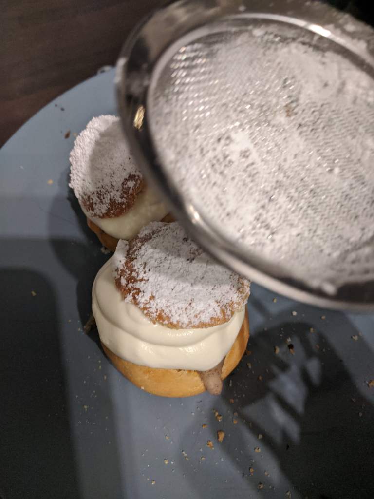 Dust icing sugar on the lid and then put the ufo’s little hat back on. Repeat until all your semla are assembled!