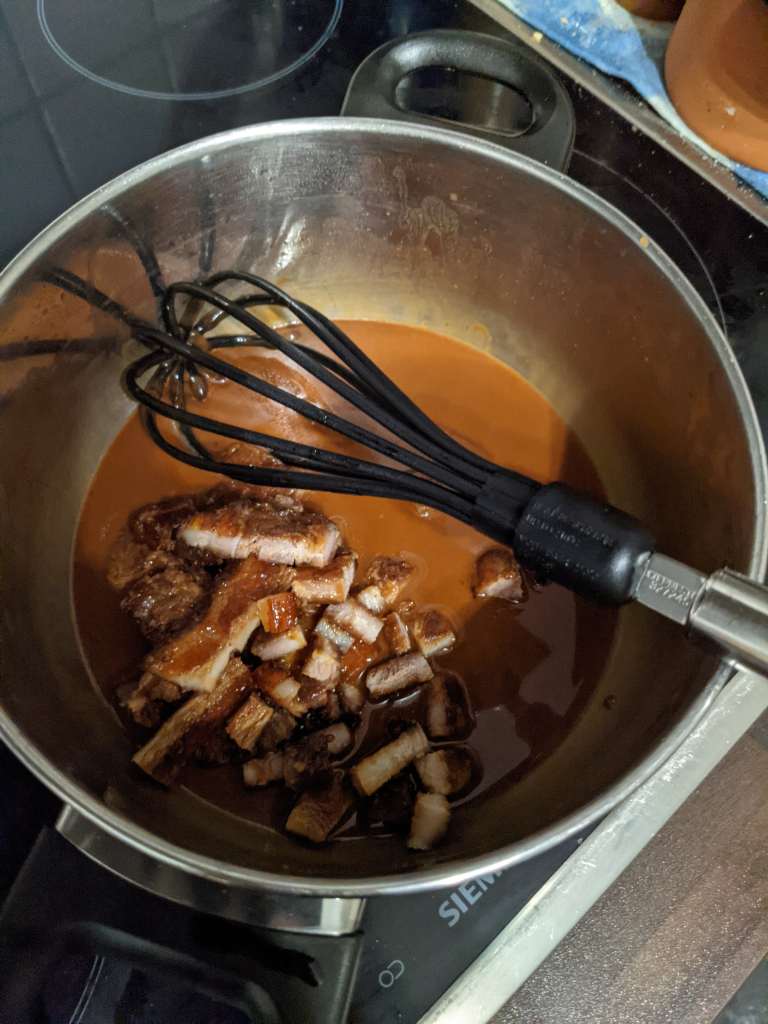 So, first things first help the meat fufill it’s role of filling by turning it into a gravy like substance.