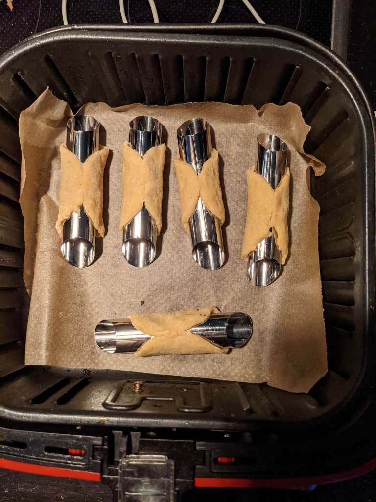 Pop as many cannolis in your air fryer as possible and cook for 12 minutes at 170°c. You may need to cook in batches.