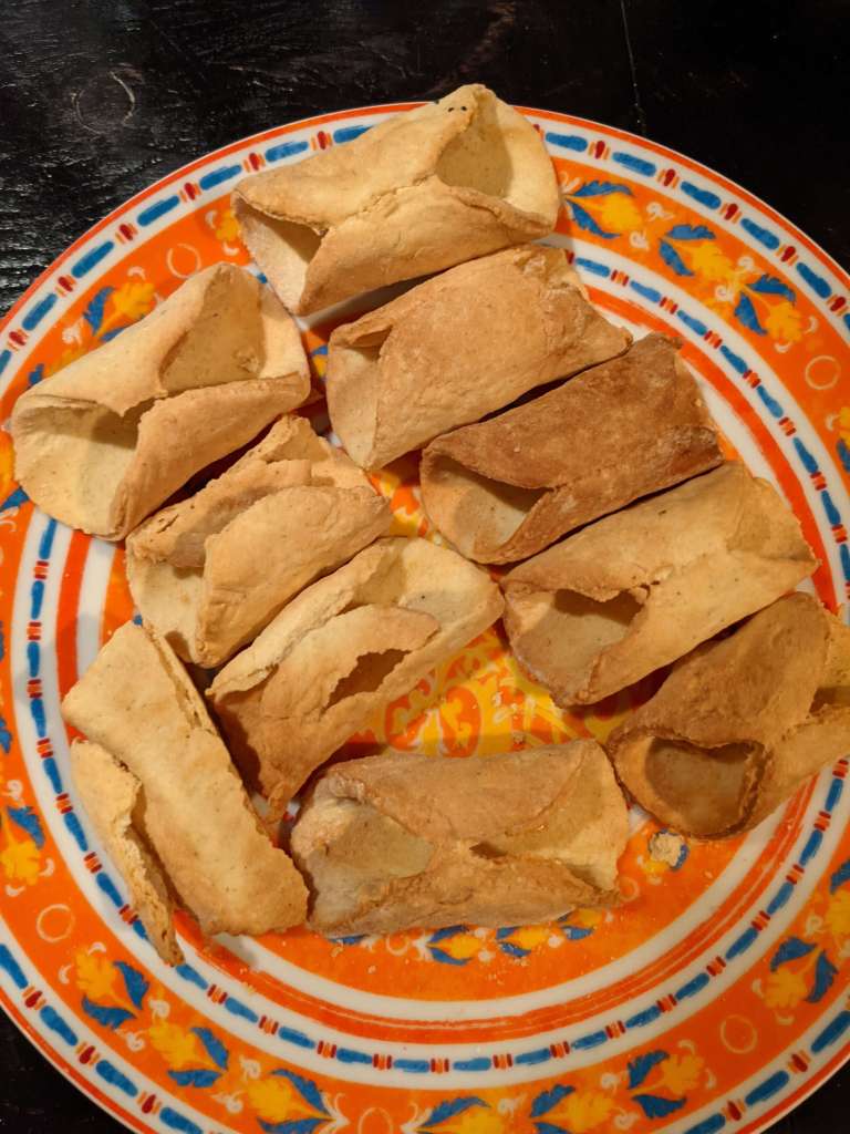 Once out and cool enough to handle, strip the cannolis of their structural tube. They are like little jackets ready to don a mascarpone body.