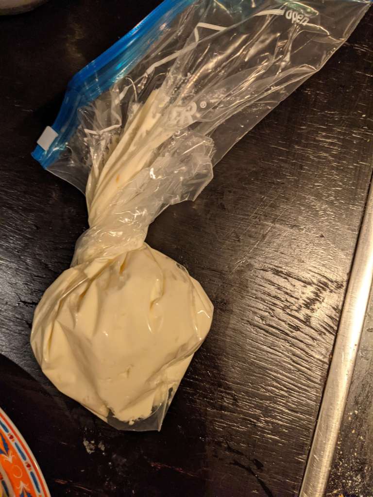 Fill a pastry bag, or ziplock if you’re being nifty and thrifty, with the mascacreamy mix.