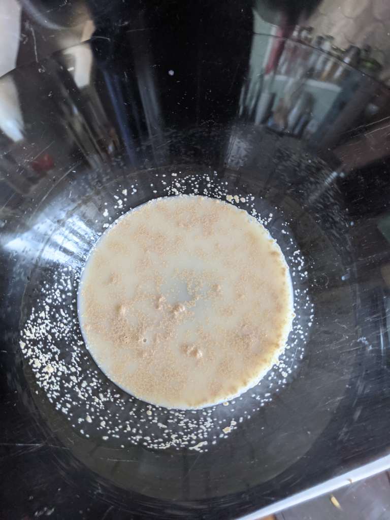Begin these godly breads with the dough. In a bowl, mix together 60ml warm milk, 40ml warm water,1/2 tbsp dry yeast and 1 tbsp of sugar and let it stand for five minutes until the yeast is bubbling happily.
