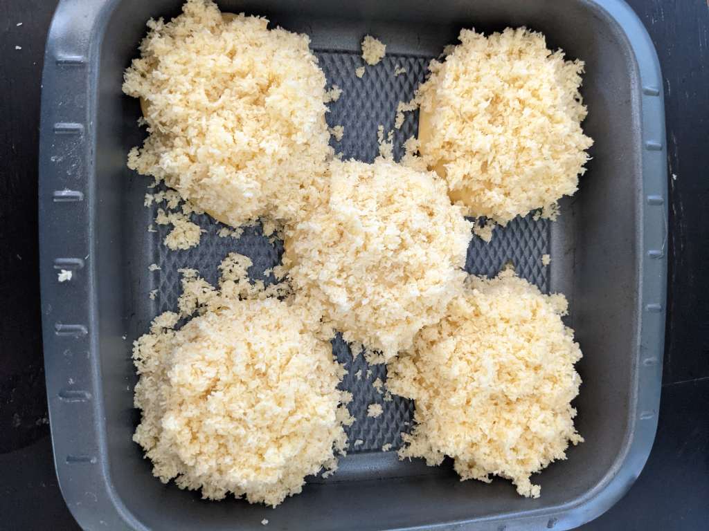 Once the buns have had their second rest, pre-heat your oven to 180°C. Add the coconut crust to the tops of the buns, careful not to steam roll them in the process. Gently press the coconut crust on the sides (you may want to do a little less than in the photo below, I don’t think they should look like they’ve been in a coconut snow storm).