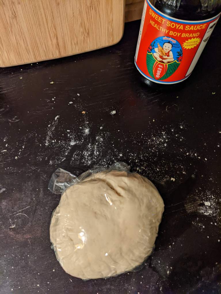 Cover in a bowl with a tea towel or cling film. Come back and knead every 15 minutes for an hour, so 4 times for all you non-maths wizards. This will make the noodles extra chewy and slippery.