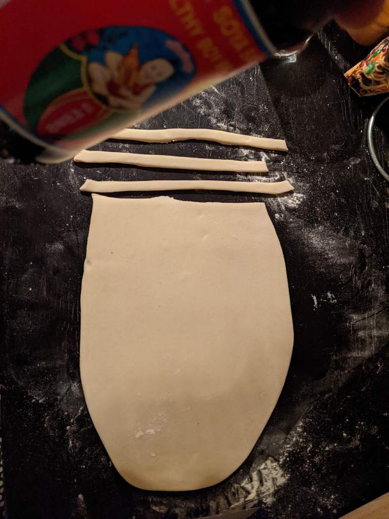 After your final knead it’s time to shape those noodles. Roll your dough into a rectangle around 4mm-6mm thick. These noodles are fat and dense so don’t be afraid to keep the dough thicc. Once rolled, slice into strands about 8mm wide.