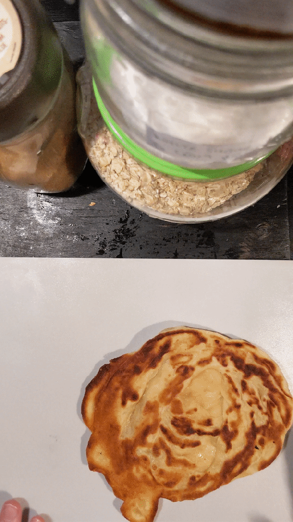 Retrieve your room temperature dough balls. Rescue one from its oily drowning fate, place on the work surface. Dip your hands into the tupperware oil. Press down on your dough to flatten it. Then use your pincer fingers, you saucy little crab, to stretch the dough out as thin as it will go – think Lady Cassandra. Dipping your hands occasionally in the oil will help the stretching process. When fully stretched, fold the edges into the middle to meet as to trap some air (not wind). It should form a 15x17cm rectangle. Heat a frying pan on a high heat and keep doing this until you’ve made all your rotis!