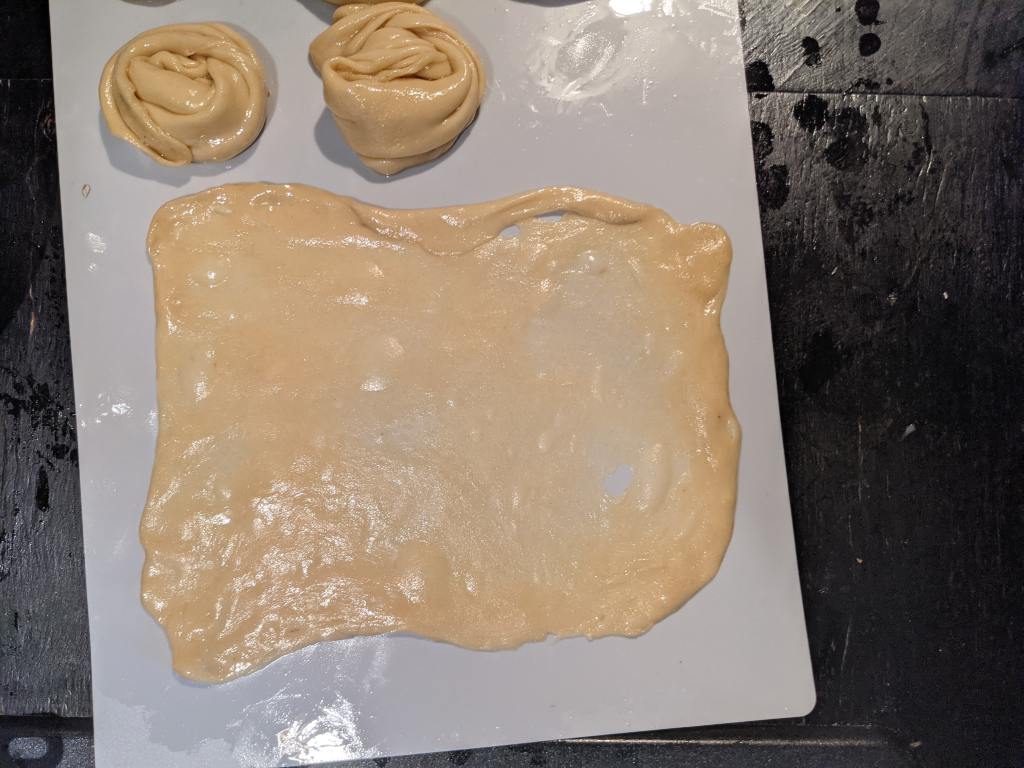 The dough will be sticky and unappetizing at first, but knead it without extra flour for five minutes and it will be become silky smooth like an adipose bebé. Now you have a beautiful, smooth dough, stop poking it (or devil fingering it), no matter how satisfying, and leave it to rest, covered for 20 minutes.