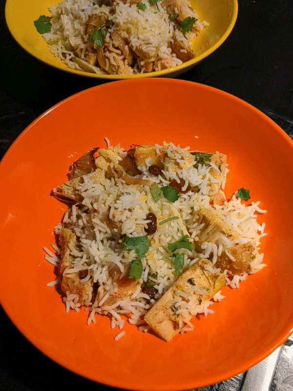 Giggle as you realise you’ve been calling this a dragonfruit biryani this entire time and dink and sink!