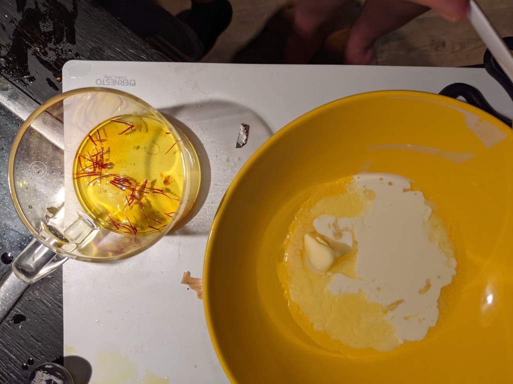 1 pinch saffron mixed in 1 tbsp boiling water