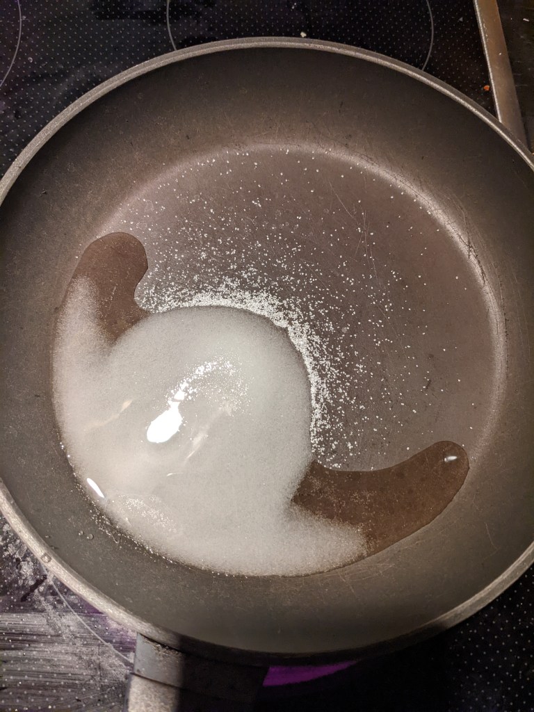 Start this recipe by making some sweet, sweet sugar syrup. On a medium heat dissolve 50g sugar in 25g water, until you can’t see the sugar anymore. Leave to cool on the side. Any sugar syrup you don’t use, you can keep in the fridge for other boozy emergencies.