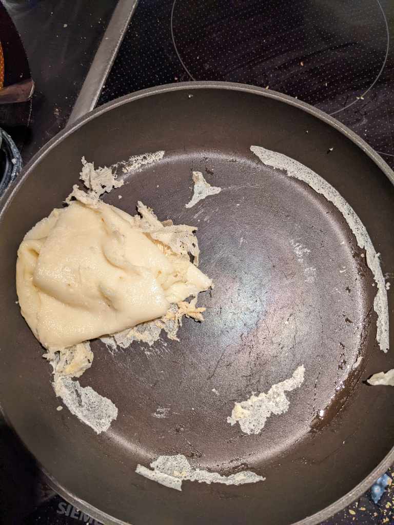 Don’t worry if this goes wrong, the pan needs a sacrificial first pancake to succeed.