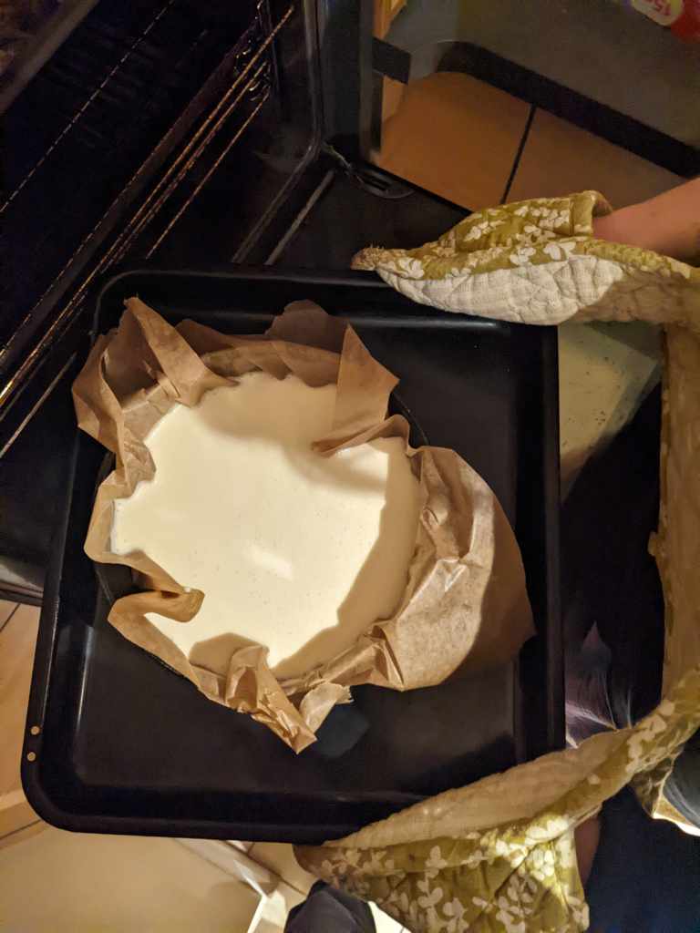 Kate says: “This was another cake which has been on the “to gasp” list for a long ol’ time. But really, it only made sense to make when we were together. It is an insanely easy recipe, literally just chucking everything in a bowl and then baking it for a long time, I feel like it would be good for a dinner party. The cheesecake itself was pretty delicious but needed a little something extra, our dad suggested raisins and I can’t say I don’t disagree with him. Some kind of fruit coulis may also be nice, and I also prefer my cheesecakes with a buttery biscuit base 7/10″