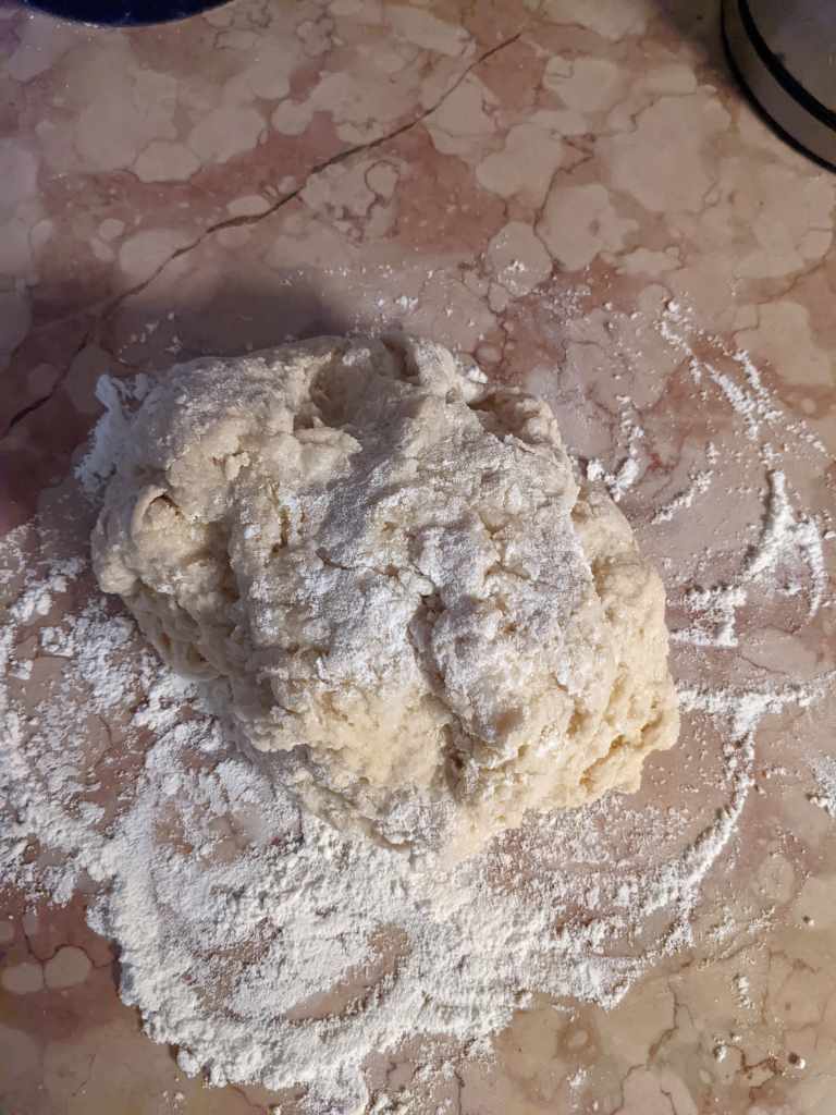 Turn the dough out onto the surface and work those arm muscles, kneading for roughly 10 minutes until smooth and elastic.