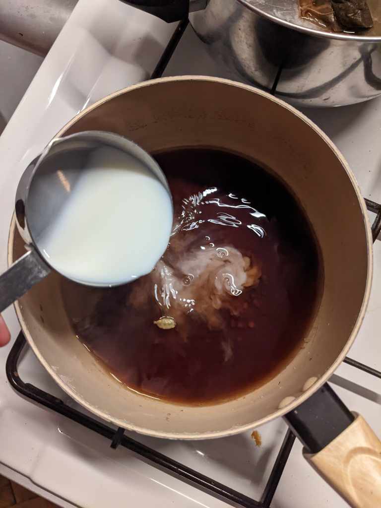 Lizzy says: “I was expecting to be transported to the Himalayas with this tea – and maybe the salt did make it taste a little like yak butter tea – but overall the result were overwhelmingly negative. It tasted fizzy from the bicarb and salt, but sweet. The worst part was it was weirdly moreish, so I couldn’t stop drinking it evern though I wanted to. Kate mentioned that it looked like wall plaster and I mistook that and instantly agreed that it tasted like what a plaster/band-aid looks like… Not the most appetizing description, but apt. 2/10 “