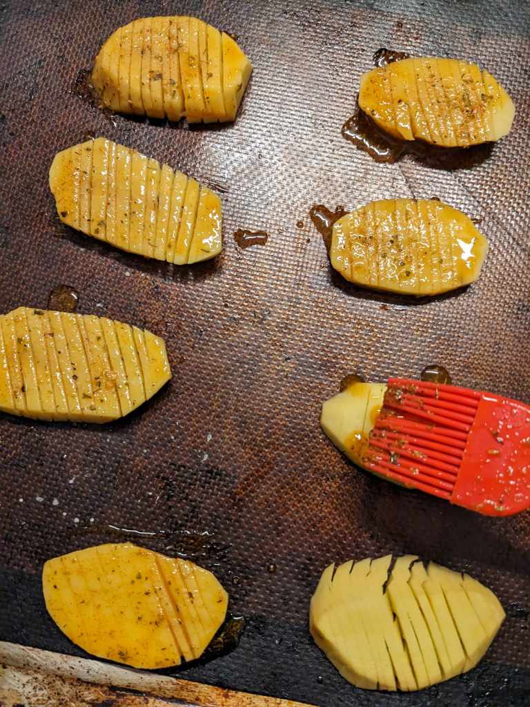 We were sucked in by Tiktok’s latest food trend and challenged ourselves to make accordion potatoes so we could be as cool as those fellow kids. We kind of winged (wung?) this one but basically used Dano’s Seasoning‘s as a source.