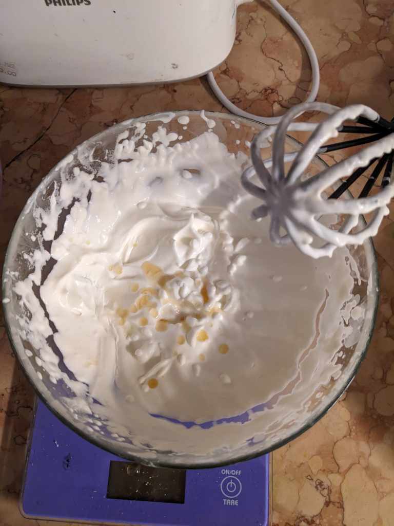 Whisk 175ml until it forms peaks as stiff as the mighty highlands and then add in 1tbsp of honey and 1tbsp whisky. Taste and add more if you like whisky as much as the Scottish do.