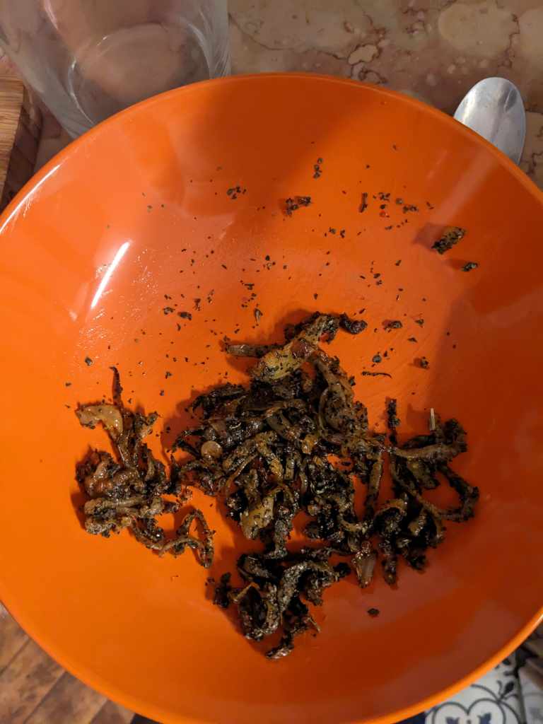 Lizzy says: “I love Iranian food. It is always so herby and flavourful (but unfortunately is quite demanding to cook, if we hadn’t have skipped a lot of the steps by using tinned beans this would have taken about 3 hours!). The cooking process wasn’t too hard and I enjoyed the end result. But I found it quite flavourless and had to add a lot of lemon into my bowl. I liked the gloopy texture, but it was quite hard to fish out the noodles to gobble them up. This was a mid gasp 5/10 “