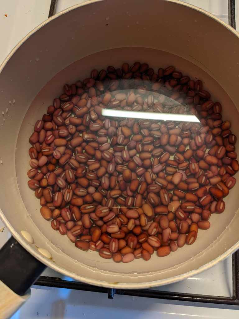 To start this process which takes almost as long as a moon cycle, begin by soaking your 100g of adzuki beans. They should get swole overnight as you can see from the right hand picture.