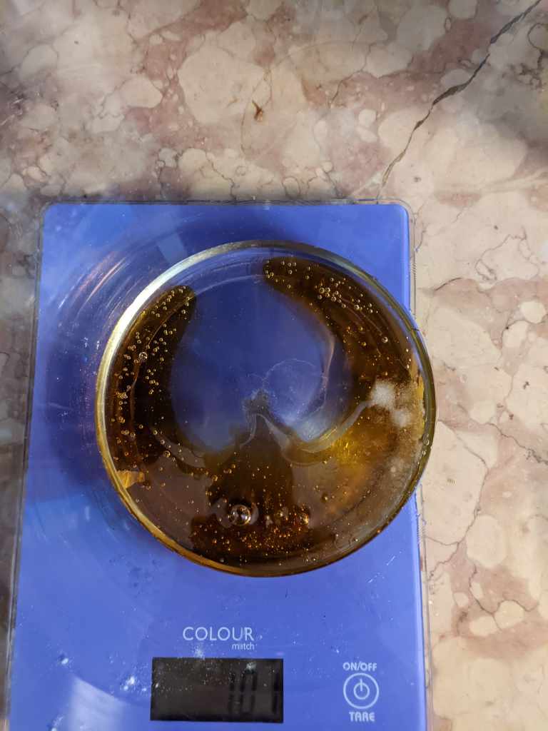 While the bean paste is cooling, time to start on the dough. In a bowl, mix together 75ml golden syrup, 25ml sunflower oil and 1/4tsp baking powder, mixed with 1tsp water.
