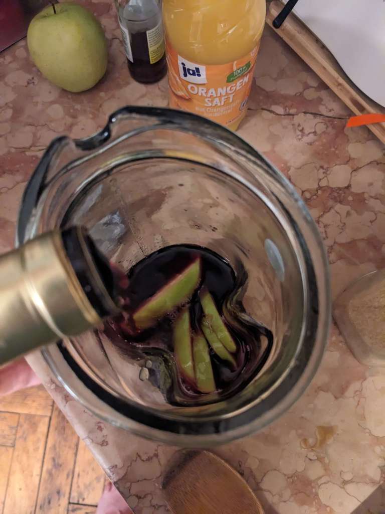 Add 1/2 bottle of red wine to this concoction and stir it together like the great potion-master you are – no muddling this time! Give it a little taste and adjust quantities as desired.