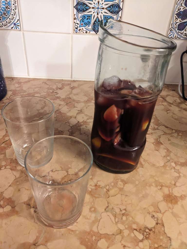 Kate says: “After a long few days of cycling, a sangria night with a romcom is the perfect white girl activity to chill out. This was great for a very hot evening in August, and even though our faces in the dink and sink look disgusted I think that was more from the alcohol strength than the taste. Once the icecubes melted a bit it was much better. Of course, the best bit of any sangria is eating the fruit at the end which I thoroughly enjoyed. I think I would make sangria again but would probably play around with the recipe quantities a bit to make it completely to my taste 9/10”