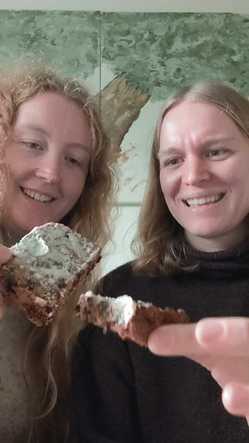 Kate says: ” Barmbrack has been on the to gasp list thanks to me for a very long time, but I’m not really sure why because I really dislike fruitcake, and this is basically a loaf fruitcake? Good thing we made it while we were visiting our parents who loved it. I think you can tell from the dink and sink that neither Lizzy or I were the biggest fans but that is more of a personal taste thing than a this recipe was not good thing. It is very dense and fruity – I would say at least 3/4 dried fruits… That’s about the only opinion I have to give…. 3/10″