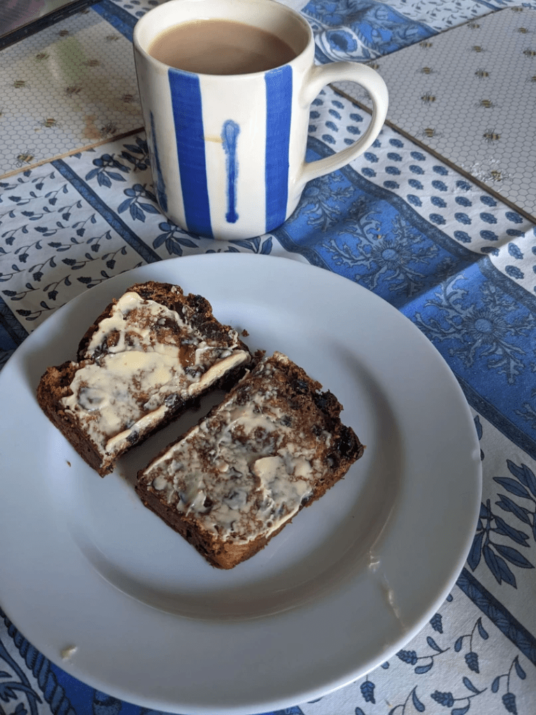 Leave to cool, and then gather your parents to serve them some sliced and buttered with a cup of tea.