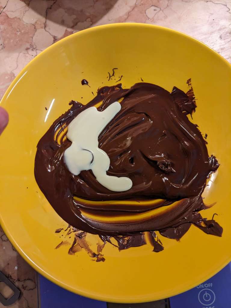 For the chocolate dipping sauce combine 100g chocolate and 125ml cream. You can either heat this in the microwave in 30 second bursts until smooth and melted, or on the hob for the same result.