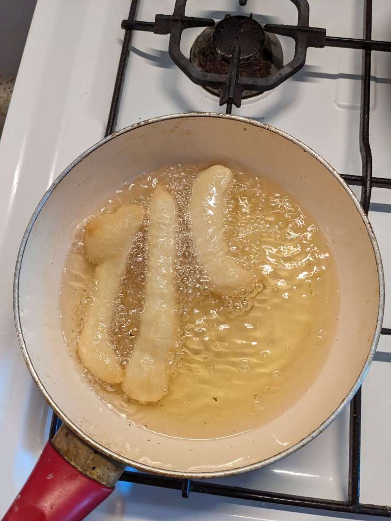 Heat 2 inches of oil in a small sauce pan and heat over a medium high heat until it reaches 170°C.