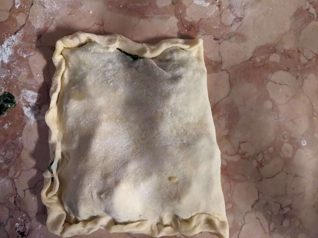 Fold the other half of the pastry over to cover the filling. Press the edges down, getting rid of excess air pockets as you do so.