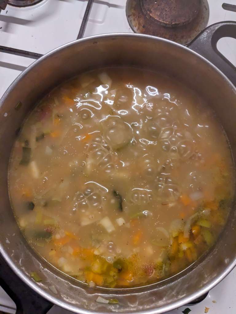 Add in the bayleaf along with 2 stock cubes and a litre of water. Reduce the heat, cover and let it simmer for an hour while you partake in a classic winter-themed activity. Jigsaw puzzle anyone?