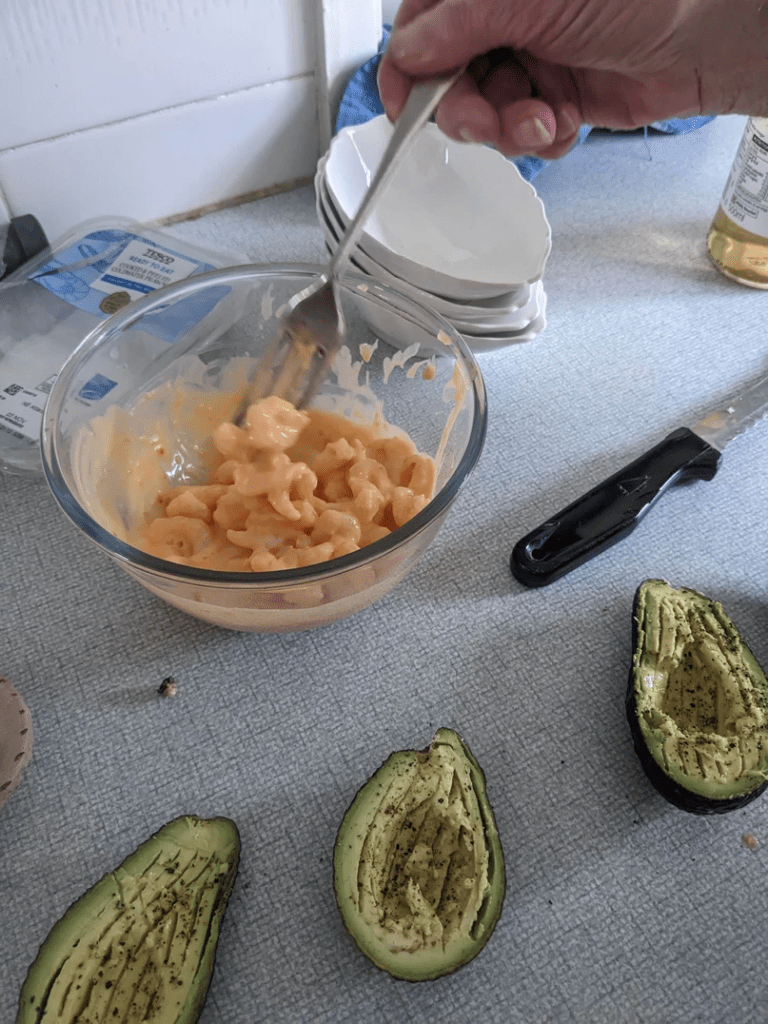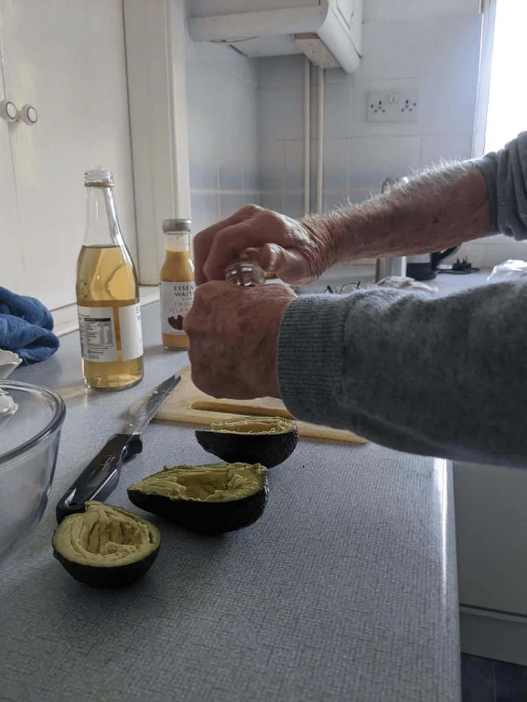 L: My favourite part of it is putting the vinegar in between the different avocados.