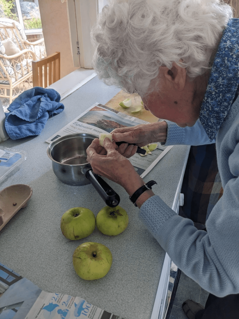 Gma: Yes. But, no you have been helpful, haven’t you? You peeled the apples and everything.