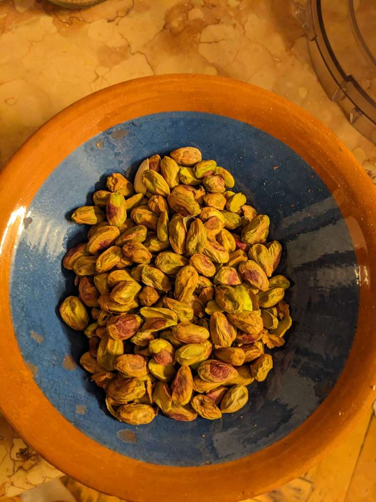 As noted above, it really is best to buy pre-shelled pistachios if you can. But if not, this is the first step of the recipe… Crack open and shell those pistachios baby! (This photo makes it look like such a small achievement…. it took so long :’) )