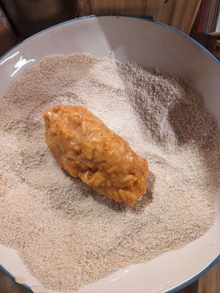 Start by rolling your beautiful babies in the egg, coating each one well, then dunk them into the bread crumbs, making sure they are well coated like an Italian fashionista ready for winter.