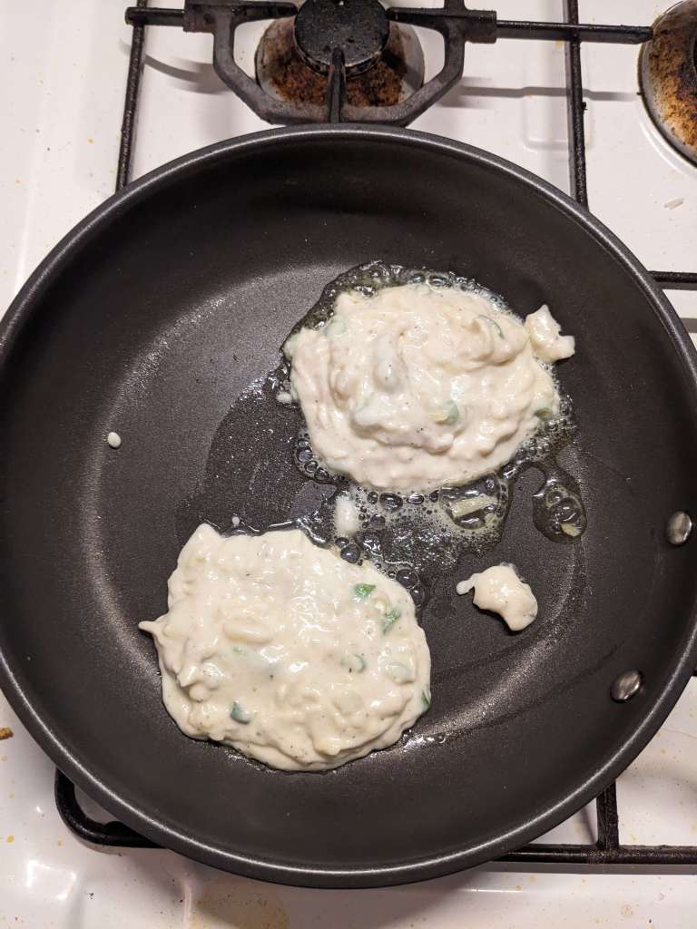 Slowly add 300ml of buttermilk until it has formed a thick batter (please note, dear reader, that this picture is probably too thick of a batter – better to thin it out a little…)