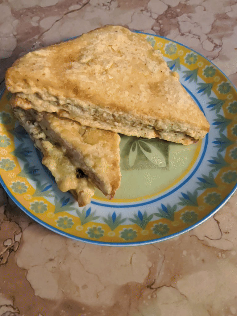 Warming, spicy and crispy, this fried Indian sandwich is the trifecta of a perfect snack. Recipe from Indian Healthy Recipes