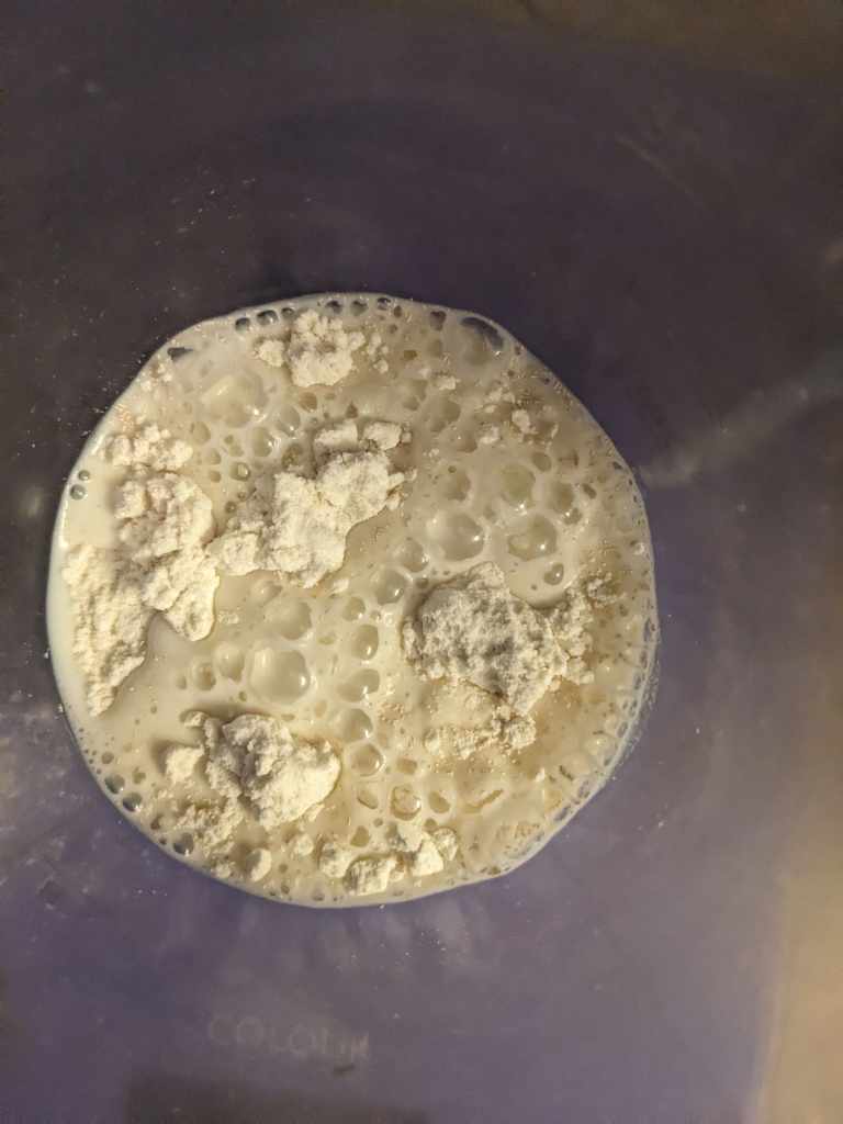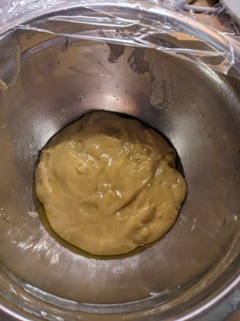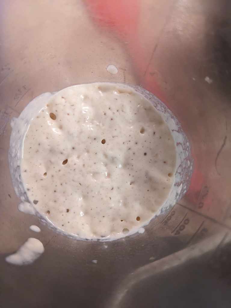 Mix until it is silky smooth, then cover and leave for an hour or two until doubled in size and bubbly like a foam party in the 90s.