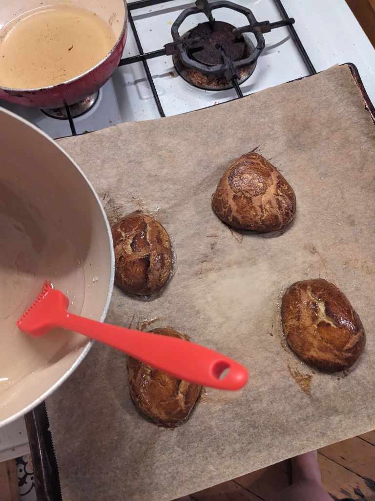 Lizzy says: “I cannot recall how I came across these, but I was so delighted by the name and the concept that I just knew they had to be gasped. However, this was a really involved recipe that took a lot of skill and patience. I was quite proud with how mine turned out and they made a nice mid-morning snack. I would not make them again though and probably also wouldn’t buy one at a shop (although since making these both Kate and I have been haunted by them – first seeing them in Nero and then in Italy at Christmas when our mum bought herself one). For me its a 5/10 “